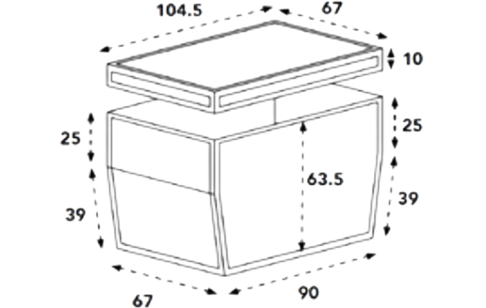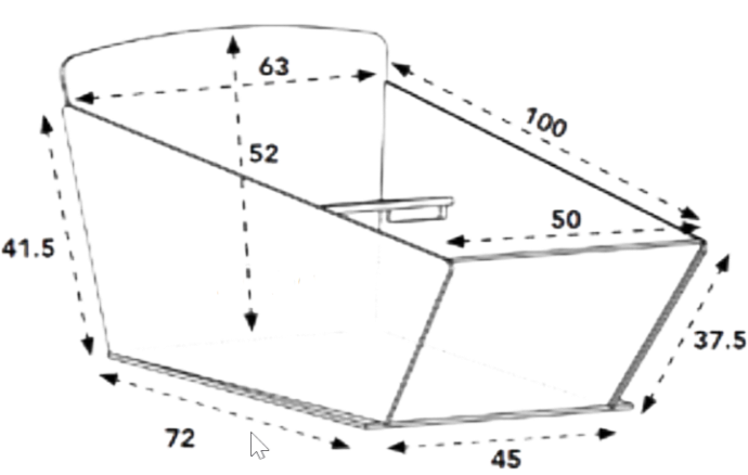 Wir bieten das Trike grundsätzlich nur in der breiten Version an. Der Grund dafür ist, dass das schmalere Modell bei Verwendung der schmalen Box deutlich früher zu kippen droht. Trotzdem möchten wir hier die Dimensionen der schmalen Box aufzeigen.