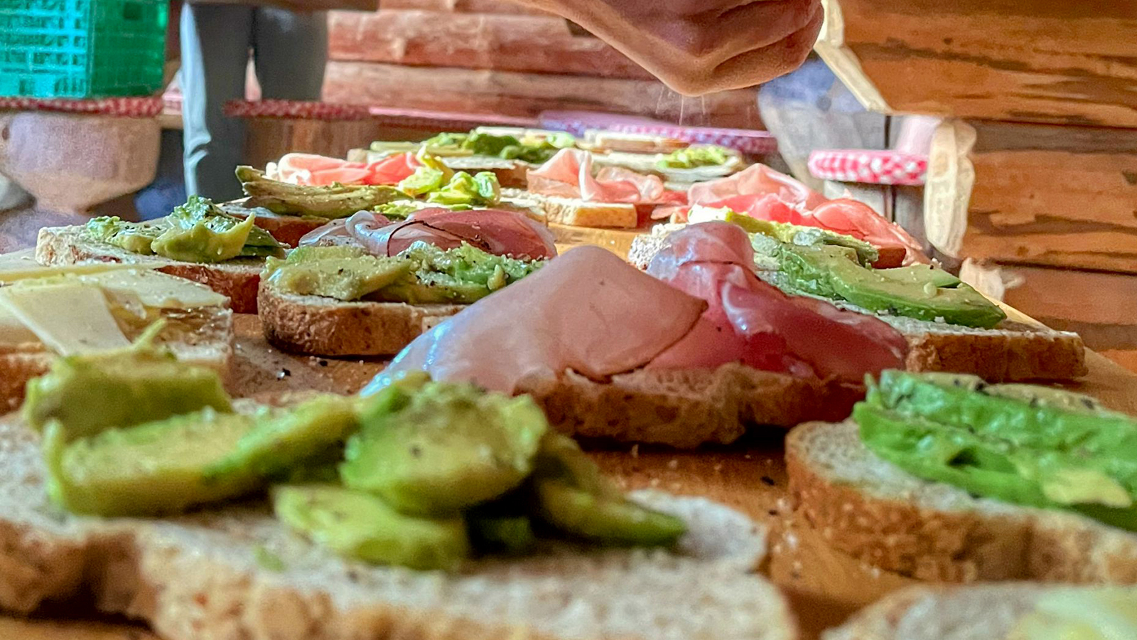 Das Wetter war – wie so oft im Herbst – herausfordernd frisch, zeigte sich aber von seiner schönen Seite, als sich die Wolken verzogen und die Sonne für eine angenehm milde Atmosphäre sorgte. Besonders der Checkpoint in der Jagdhütte war ein echtes Highlight. Das knisternde Campfeuer lud zum Verweilen ein und spendete wohltuende Wärme nach den ersten Anstrengungen. Hier konnten die Fahrer:innen Kräfte tanken, sich aufwärmen und bei gutem Essen und guter Gesellschaft den Moment geniessen.