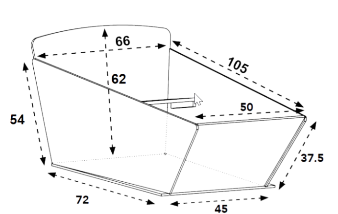 Wir bieten das Trike grundsätzlich nur in der breiten Version an. Der Grund dafür ist, dass das schmalere Modell bei Verwendung der schmalen Box deutlich früher zu kippen droht. Trotzdem möchten wir hier die Dimensionen der schmalen Box aufzeigen.